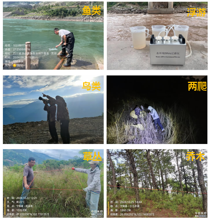 2024年8月,我司受凉山彝族自治州宁南生态环境局委托后,参照《生物多样性观测技术导则》《县域生物多样性调查与评估技术规定》(环境保护部公告2017年第84号)的技术规范要求,结合宁南县实际情况,编制了调查评估实施方案,并开展了为期一年的县域生物多样性调查与评估工作,顺利完成陆生高等植物、植被、陆生哺乳动物、鸟类、两栖类和爬行类昆虫、鱼类、浮游生物、大型底栖无脊椎动物、周丛藻类等11个类群的调查及评估,全面覆盖陆地与水域生态系统。