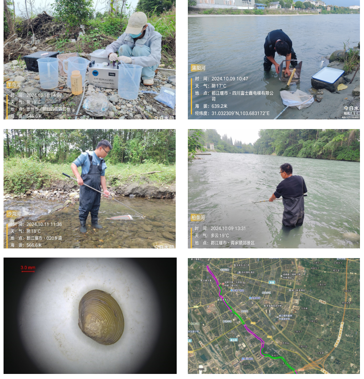 2024年9月,我司受成都市都江堰生态环境局委托后,基于环境DNA监测技术与传统形态学调查方法结合,系统开展都江堰市域内蒲阳河、金马河等10条重点河流及紫坪铺水库的水生态调查,摸清了水生生物多样性本底现状,掌握了重点保护水生生物种类及分布,初步构建起全面的水生态基础数据库,系统分析评估了水生态环境质量状态,为提升水生态保护与管理能力工作提供了数据支持。同时,根据水生态现状监测数据开展长江水生态考核评价试算,为都江堰市应对水生态考核提供数据参考。