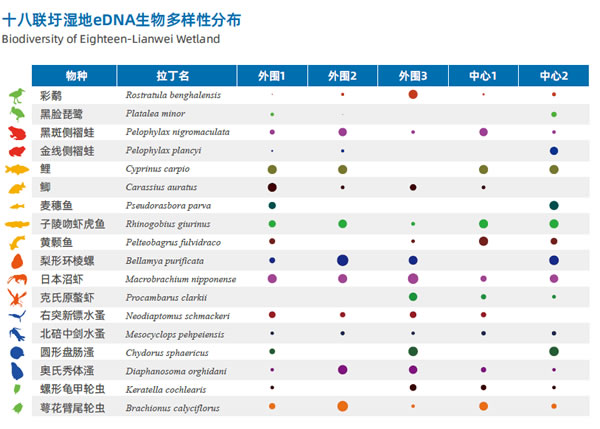 为评价湿地的生态现状,我们利用环境DNA技术对湿地的29个位点进行了生物监测,结果显示十八联圩湿地具有较高的生物多样性和较为完整的食物网结构,并为其阶段性生态状况提供定性和定量评估.